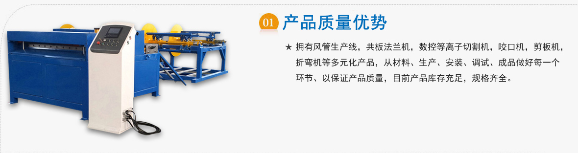 | 熱門關(guān)鍵字:風(fēng)管生產(chǎn)線二線三線五線、風(fēng)管生產(chǎn)線廠家、數(shù)控等離子切割機、咬口機、共板法蘭機 |